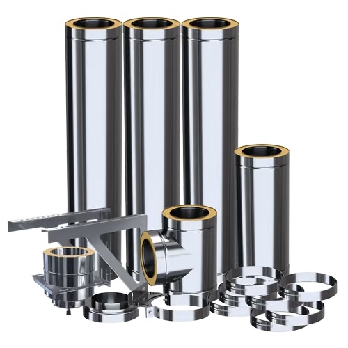 Dvojplášťový izolovaný komínový systémy sú vynikajúcou alternatívou k murovaným komínom. Umožňujú inštaláciu na akomkoľvek mieste, bez potreby hotového komínového prieduchu. Dajú sa umiestniť zvonka na fasádu, s ukotvením na podpornú konzolu alebo na základ.