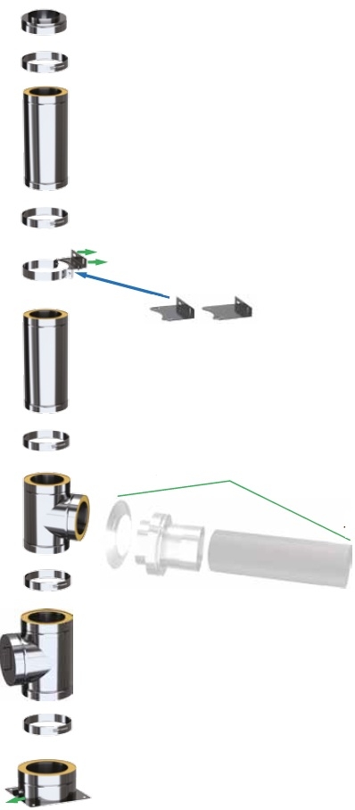 Dvojplášťový izolovaný komínový systémy sú vynikajúcou alternatívou k murovaným komínom. Umožňujú inštaláciu na akomkoľvek mieste, bez potreby hotového komínového prieduchu. Dajú sa umiestniť zvonka na fasádu, s ukotvením na podpornú konzolu alebo na základ.