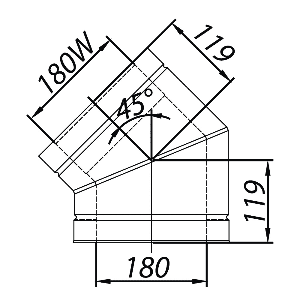 Koleno vytvára oblúk s uhlom 45° a slúži na zmenu smeru komínovej inštalácie. Používa sa aj na predĺženie komína.