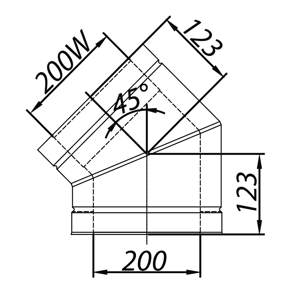Koleno vytvára oblúk s uhlom 45° a slúži na zmenu smeru komínovej inštalácie. Používa sa aj na predĺženie komína.