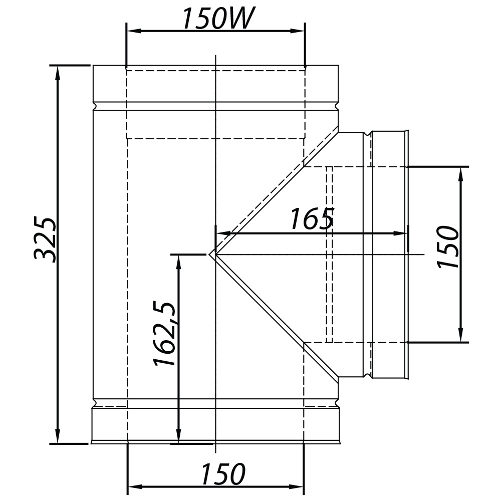 T-kus sa používa na spojenie komína s krbom. Výstup z tohto T-kusu možno kombinovať s prvkami z uhlíkovej ocele.