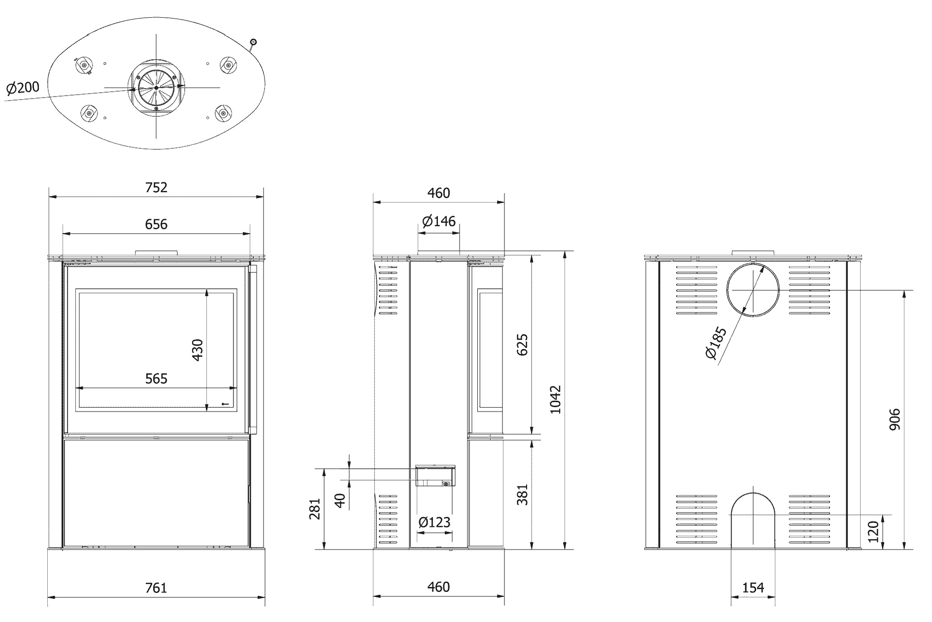 - jednoduchšia inštalácia kachlí vďaka otvoru v základni - Ø200 mm,