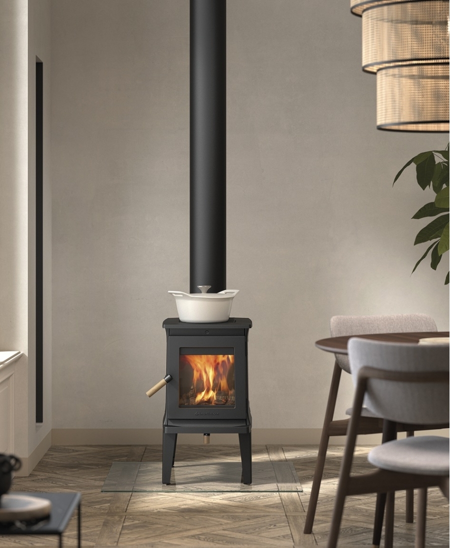 - Kompaktný dizajn: S hmotnosťou 100 kg a priemerom dymovodu Ø150 mm je táto piecka ideálnou voľbou pre priestory, kde je dôležitá efektívnosť a štýlový vzhľad.
