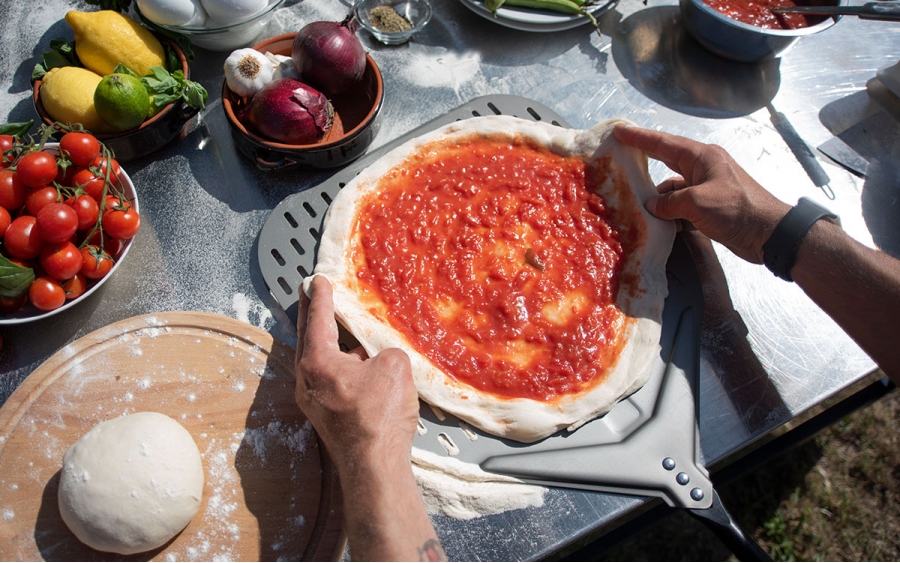 - 1 perforovaná lopatka na vkladanie pizze do pece - vďaka otvorom sa zbavite prebytočnej múky
