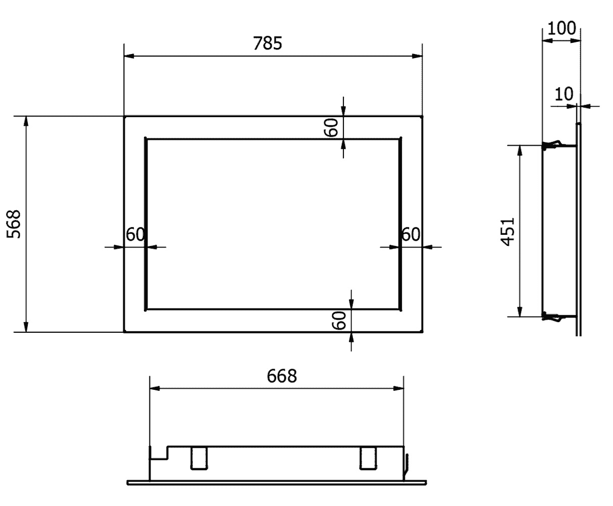 Montážny rámik 60mm pre krbové vložky ZIBI ECO rovné presklenie