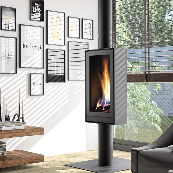 Exkluzívne plynové kachle s možnosťou otáčania o 360° poskytujú pohľad na tancujúce plamene z každého kúta miestnosti. Spaľovacia komora je vybavená sadou keramických polienok, ktoré imitujú efekt horiaceho dreva.