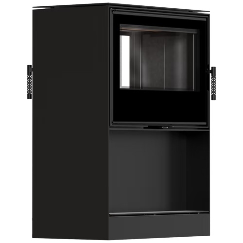 Tunelové krbové kachle KARI 80 s podstavcom na drevo s čiernym ohniskom